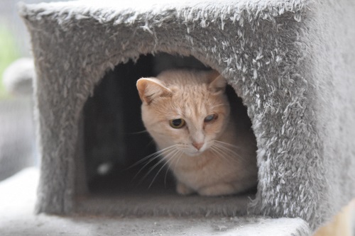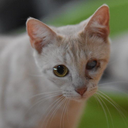 Una gatita muy dulce y algo tímida. No ve por uno de sus ojitos. Es hermana de la gata Baba.